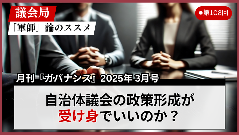 自治体議会の政策形成が受け身でいいのか?|議会局「軍師」論のススメ 第108回
