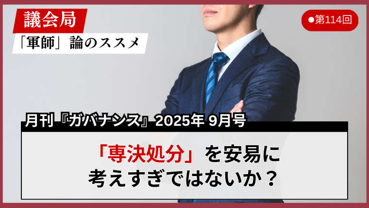 「専決処分」を安易に考えすぎではないか?|議会局「軍師」論のススメ 第114回