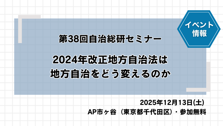 【イベント】第38回自治総研セミナー「2024年改正地方自治法は地方自治をどう変えるのか」