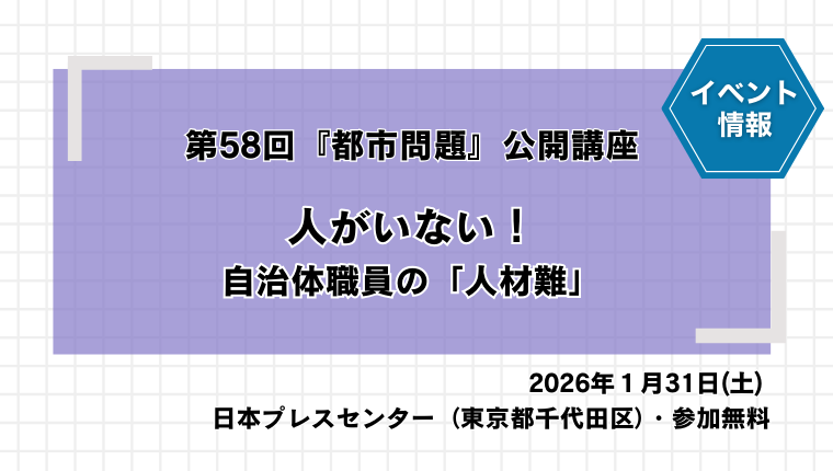 【イベント】第58回『都市問題』公開講座「人がいない!ー自治体職員の『人材難』」