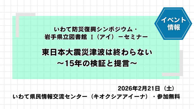 【イベント】いわて防災復興シンポジウム・岩手県立図書館 I(アイ)-セミナー 「東日本大震災津波は終わらない~15年の検証と提言~」