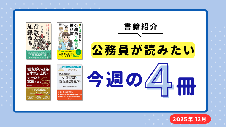 公務員が読みたい今週の4冊【行政の組織改革/公務員1年目の教科書/働きがい改革/労災認定・安全配慮義務】