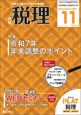 月刊 税理 2025年11月号 特集:令和7年年末調整のポイ…